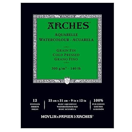 CANSON Arches Cold Press Watercolor Pad, 12 Sheets, Natural White, 9 by 12-Inch