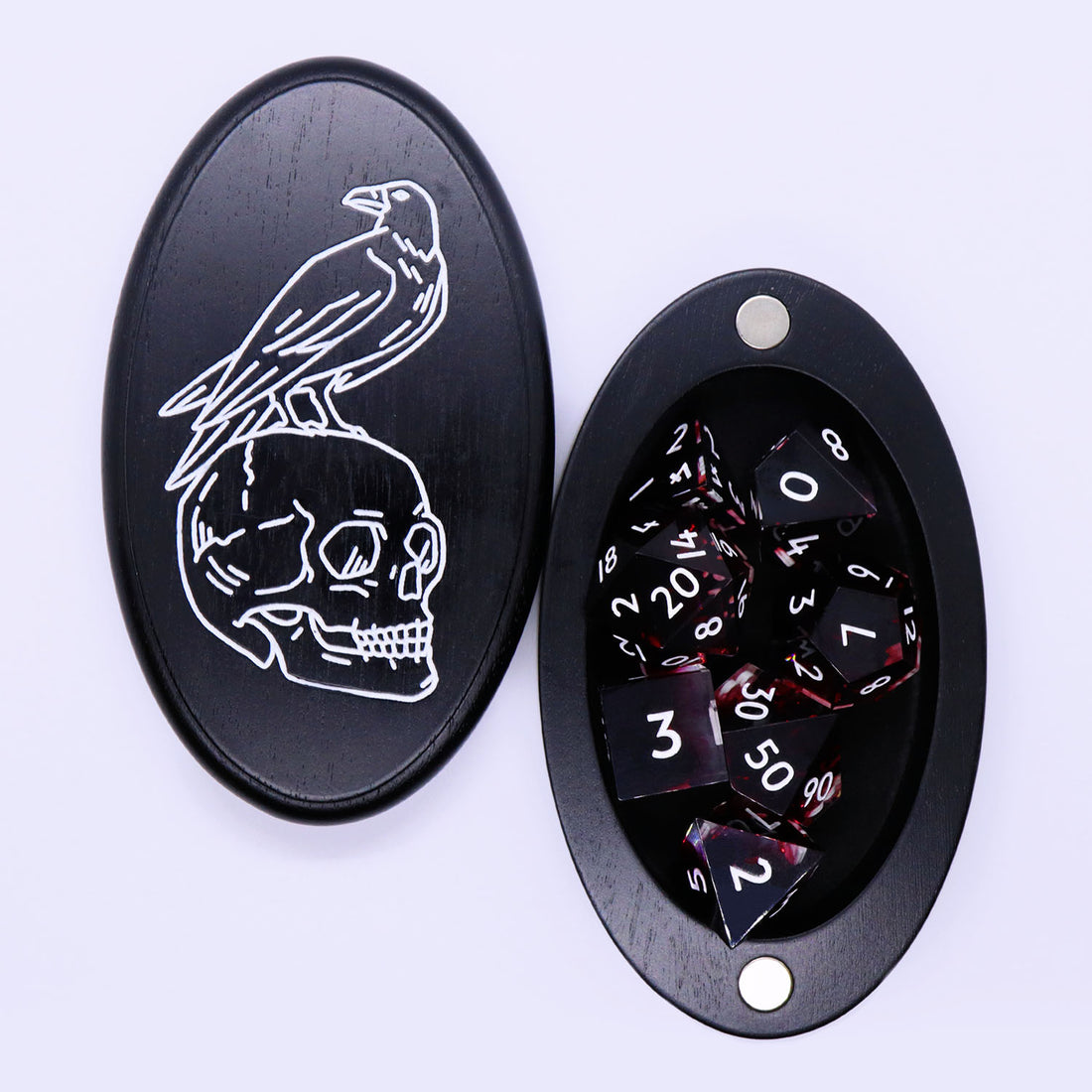 Memento Mori - Black and White Engraved Wooden Dice Vault