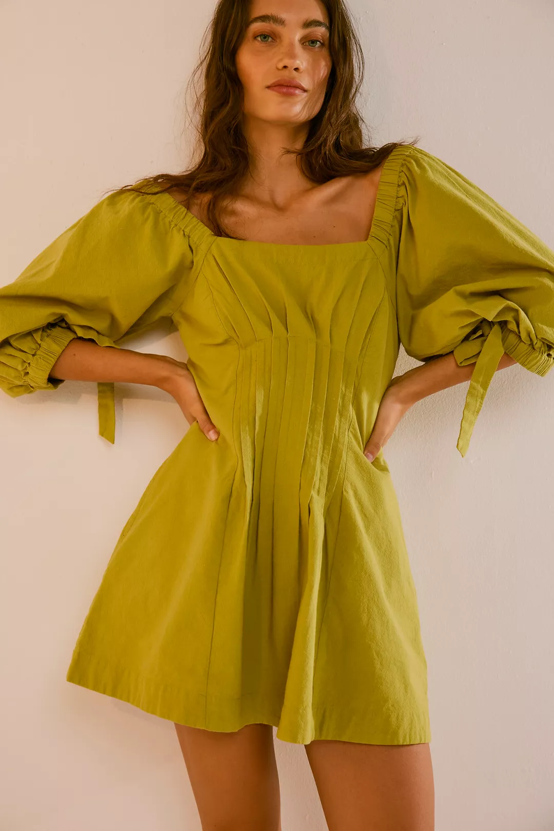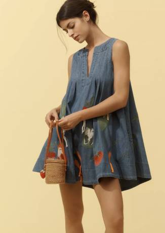 Maeve Sleeveless V-Neck Veggie Denim Mini Dress