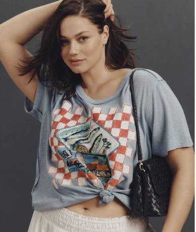 Maeve Sardine Linen Blend Graphic Tee