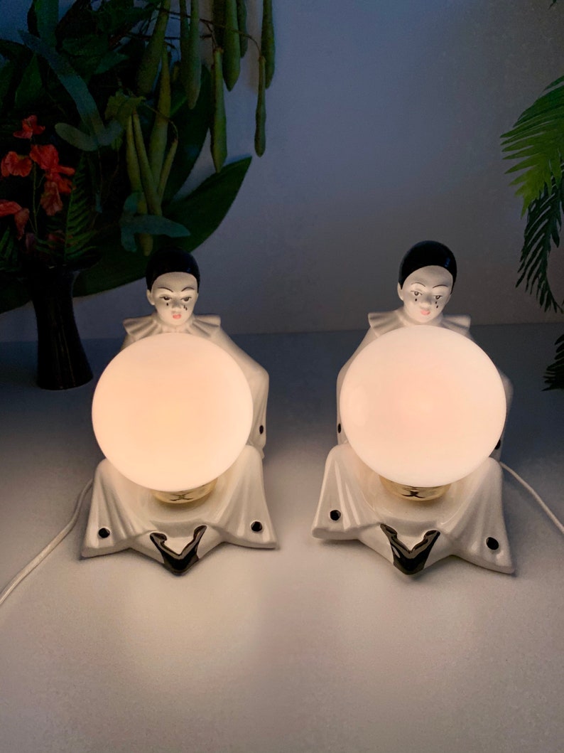 Etsy | Vintage 80s Pierrot Clown Lamps Set of Two