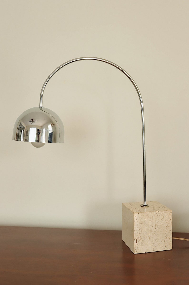 Etsy | Vintage Guzzini Travertine Chrome Arc Table Lamp