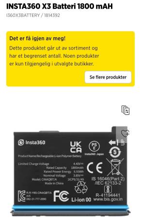 Batteri til insta 360 x3