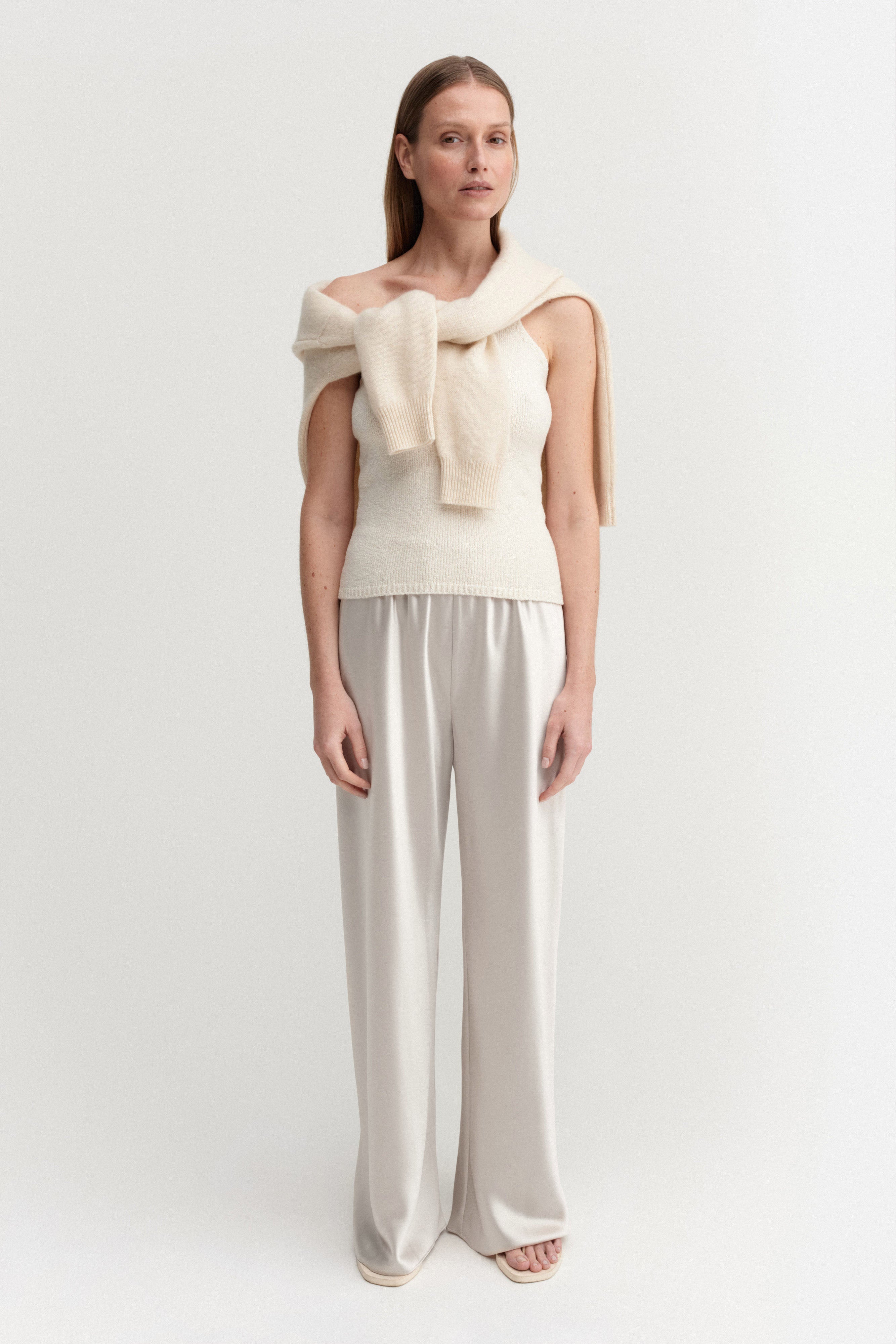 Bias Satin Pants, pearl