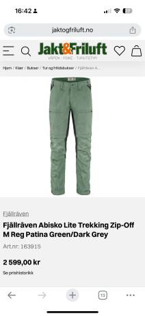 Fjellreven turbukse med mulighet for å ta av beina. (ABISKO LITE TREKKING ZIP-OFF M REG i patina gre