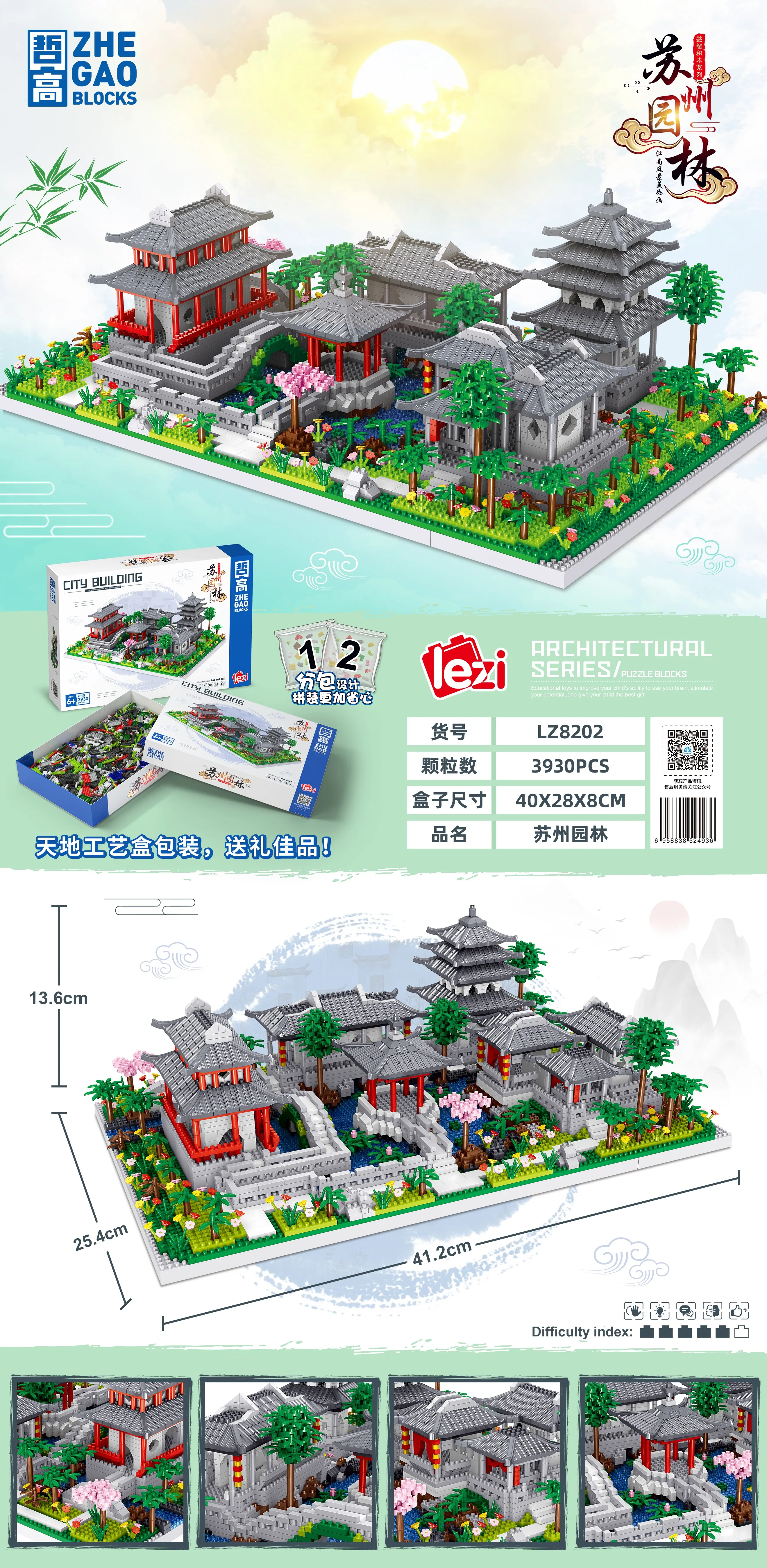 68.69AU $ 25% OFF|Chinese Traditional Suzhou Classical Garden Architecture Collection Building Set f