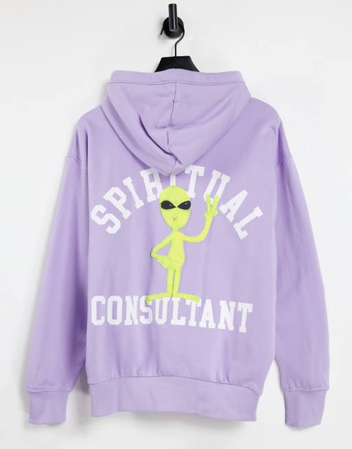 Weekday Alisa organic cotton hoodie with alien motif in lilac | ASOS