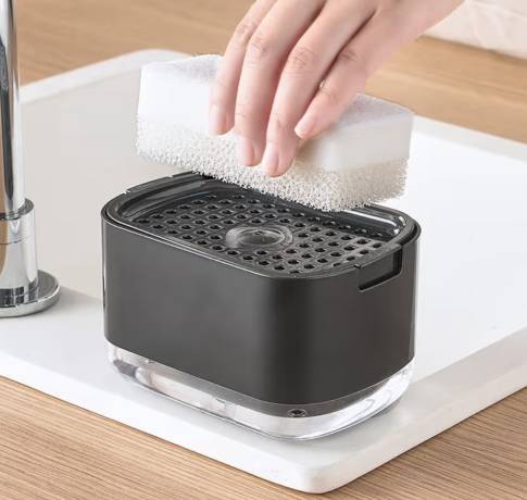 A kitchen dish soap dispenser