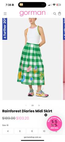 Rainforest Diaries Midi Skirt Size 18 $103