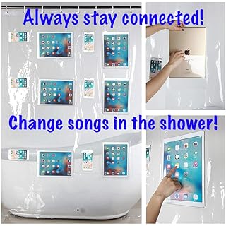 Better Than Bubbles Tech Friendly Clear Shower Curtain Liner with Pockets - for iPad, iPhone, Androi