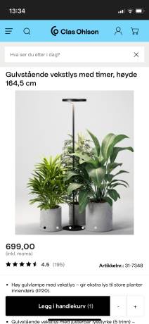 Gulvstående vekstlys med timer