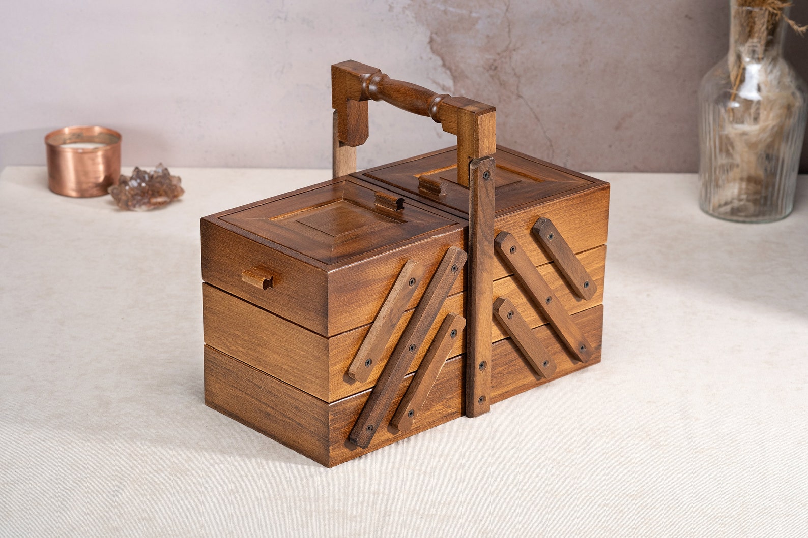 Wooden Tool Box, Fold Out Tool Container, Vintage Tool Chest, Storage Box, Gift for Husband, Vintage