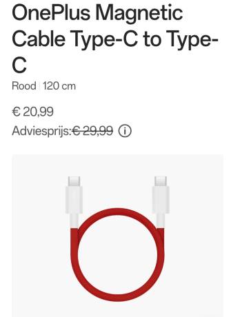 OnePlus Magnetic Cable Type-C to Type-C Rood120 cm : €20,99