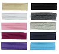 Trendy, Soft, and Stretchy Cotton Yoga Headbands (10 Pack - Variety of Colors) - For Yoga, Running,