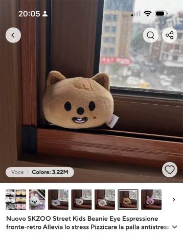 Ho appena trovato questo articolo su AliExpress: 6,69€ | Nuovo SKZOO Street Kids Beanie Eye Espressione fronte-retro Allevia lo stress Pizzicare la palla antistress Regalo per fan della bambola https://a.aliexpress.com/_EH205EQ
