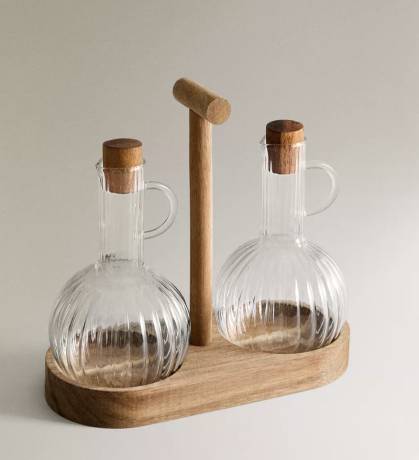 CONJUNTO GALHETA AZEITE BOROSSILICATO MADEIRA