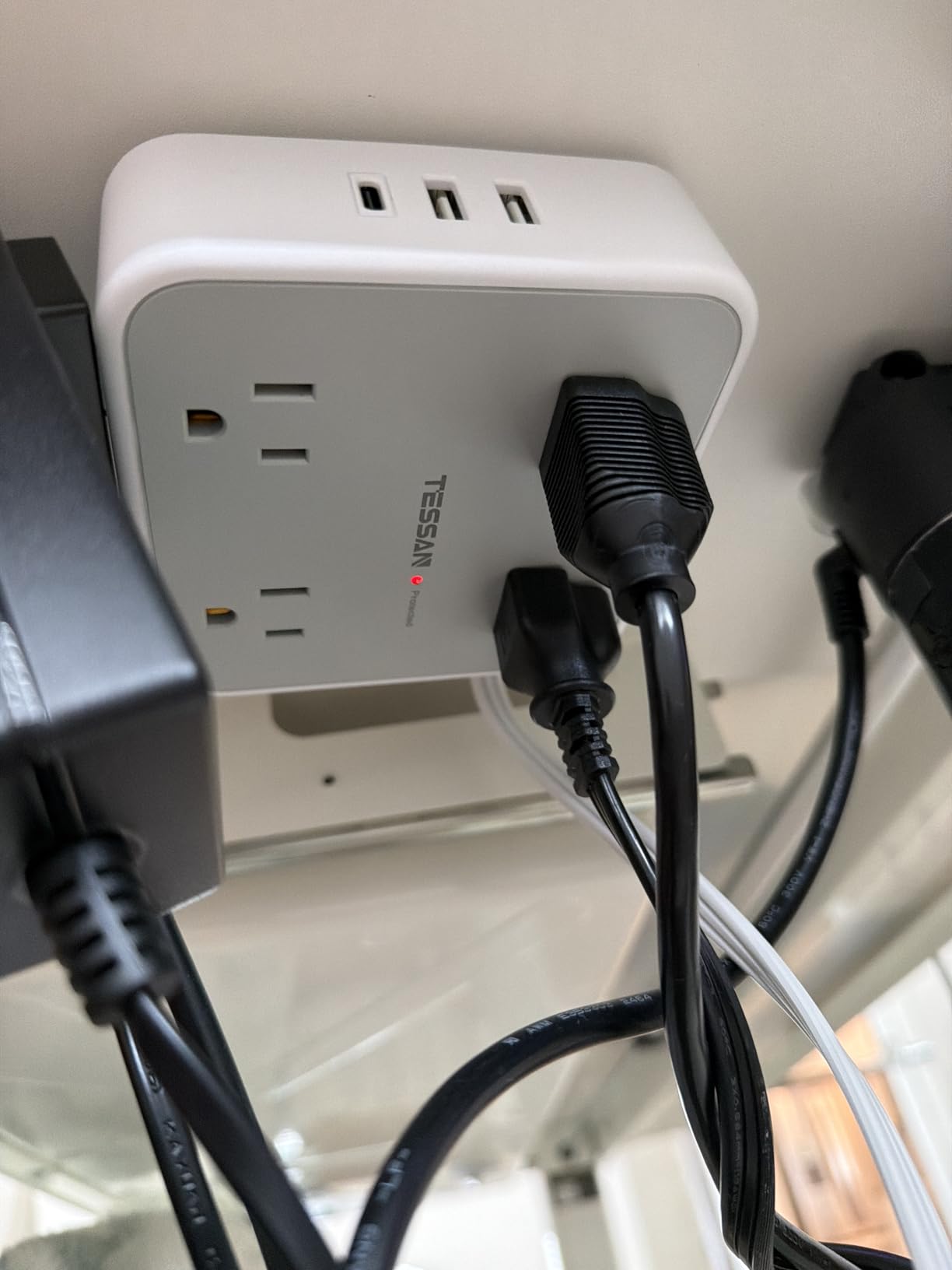 Flat Plug Extension Cord 10 FT, TESSAN Surge Protector Power Strip with 4 AC Outlets 1 USB C and 2 U