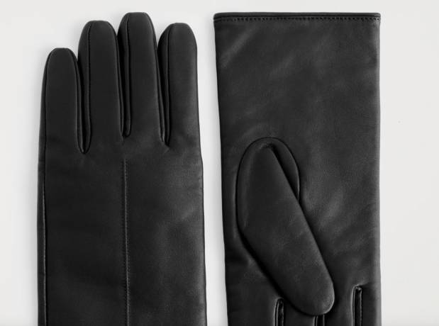 gants en cuir noir COS
