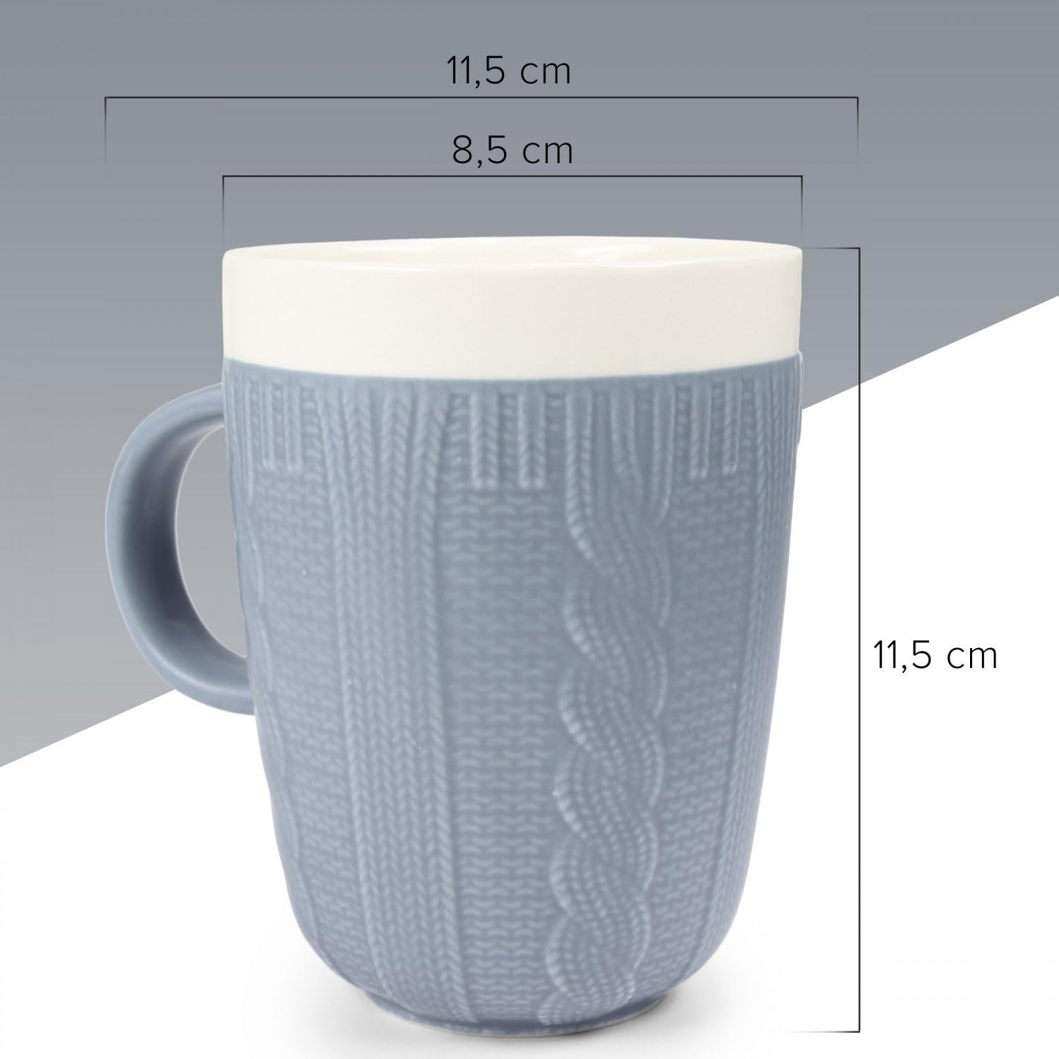 Taza Cerámica, Motivo Tejido con Tapa Madera