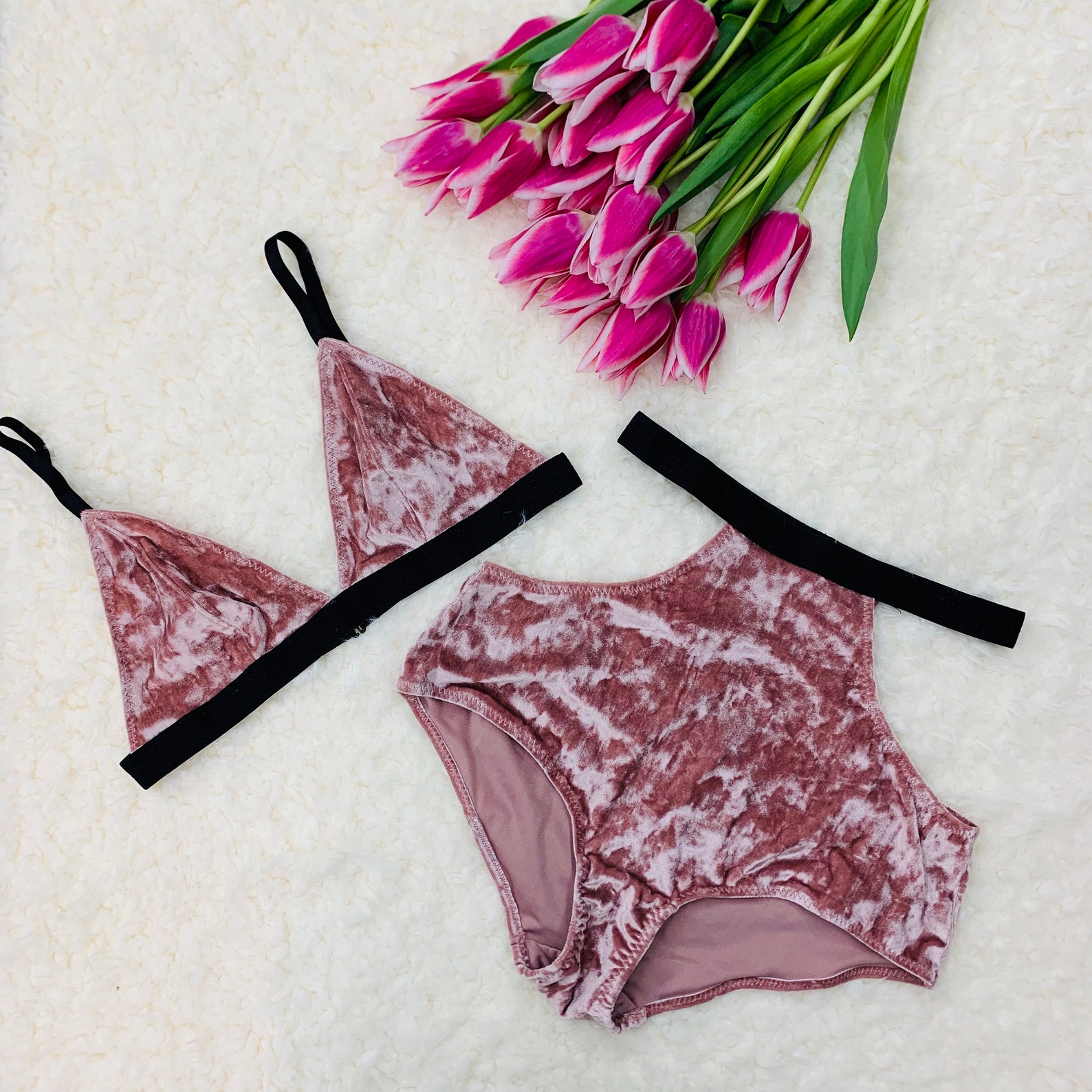 Pink velvet lingerie