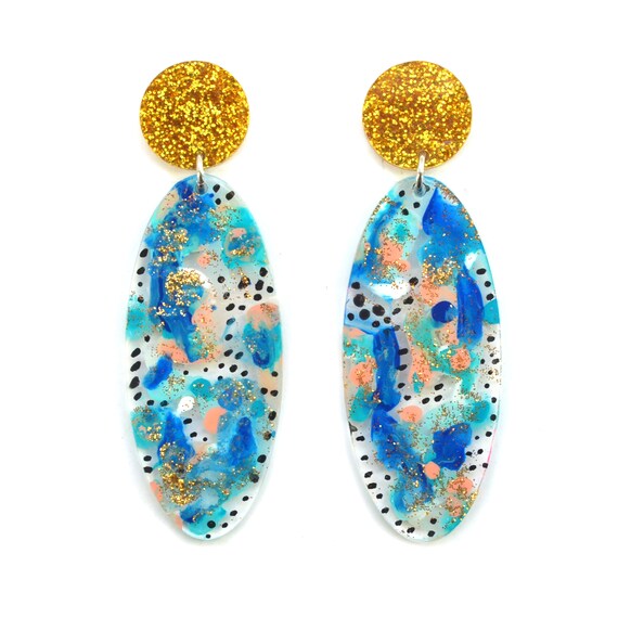 Pattern Earring, Gold Earring, Statement Earring, Abstract Art Earring, Laser Cut Earring, Acrylic E