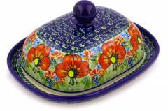 8" Butter Dish (Poppy Parade) | Polish Pottery House
