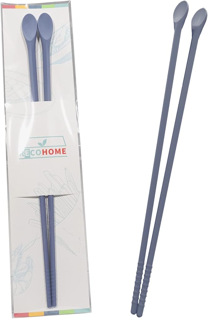 RECOHOME Reusable Long Silicone Cooking Chopsticks with Spoon 12 Inches Dishwasher Safe BPA-free Non