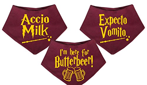 Exaspecto Accio - Baberos para bebé con diseño de Harry Potter, 3 unidades, 100% algodón, tamaño úni