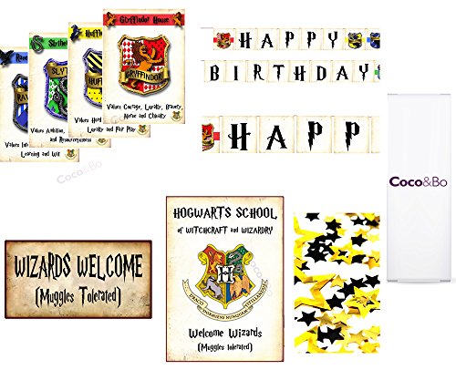 Paquete Platinum de decoración para salón de fiesta Coco & Bo. Casas Hogwarts, Gryffindor, Slytherin