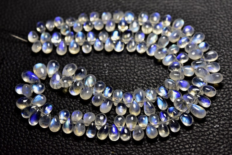 AAA Natural Blue Fire Rainbow Moonstone Teardrop Bead