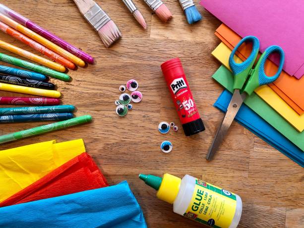 Knutselsetje met papier, knippen, lijmen, etc