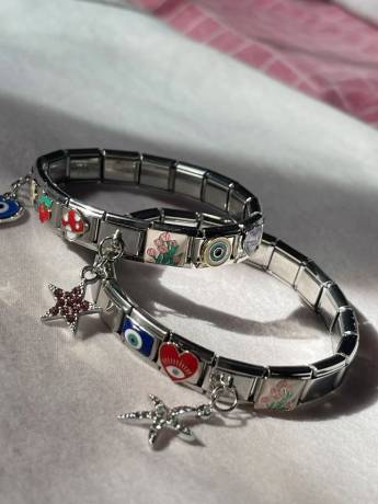 Pulsera de plata con cosas de cine y dirección