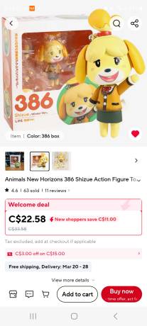 Isabelle action figure. Sold on Aliexpress