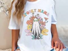 Halloween Mom Shirt Spooky Halloween Mom Shirt Retro Ghost Shirt Spooky Vibes T-Shirt Funny Hallowee