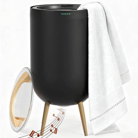 Towel and robe warmer, with Bluetooth speaker, and lights