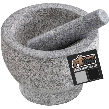 GORILLA GRIP Heavy Duty 100% Granite Mortar and Pestle Set, Slip Resistant Foam Base, Grind Spice an