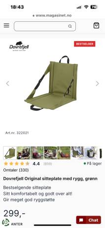 Sitteplate, friluftstol. ikke den dyre typen fra vidda.
