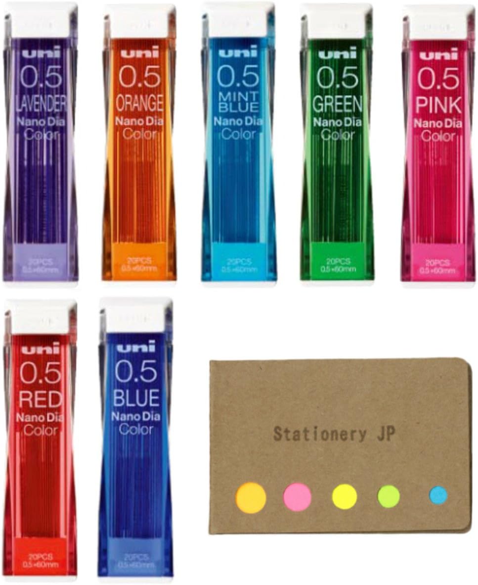 Uni NanoDia Color Mechanical Pencil Leads, 0.5mm, 7 Colors, 7-Pack/Total 140 Leads, Sticky Notes Val