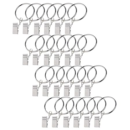 BCP 24 Pieces Metal Drapery Curtain Rings with Clips