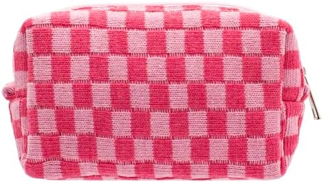 PAZIMIIK Checkered Makeup Bag for Purse Portable Zipper Make Up Pouch Small Cosmetic Case for Travel