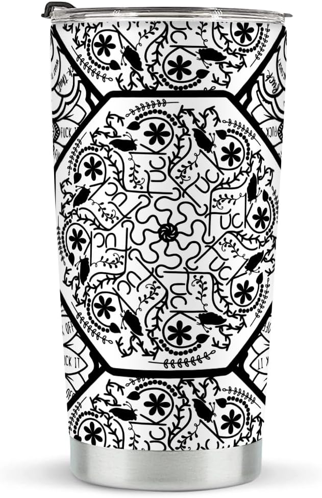 Hidden Cuss Word Tumbler Black And White Mandala Flower Pattern