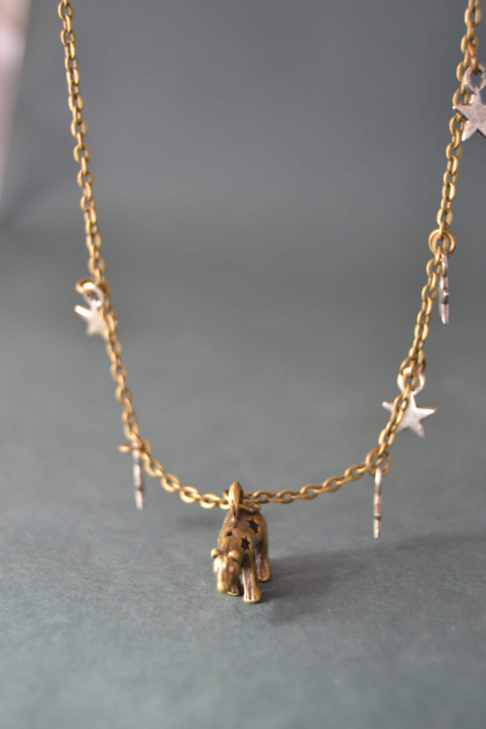 Vintage Tiny Bear Necklace, Vintage Style Dainty Necklace Polar Bear Necklace, Silver Stars Charms N