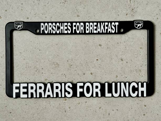 “PORSCHES FOR BREAKFAST FERRARIS FOR LUNCH” License Plate Frame