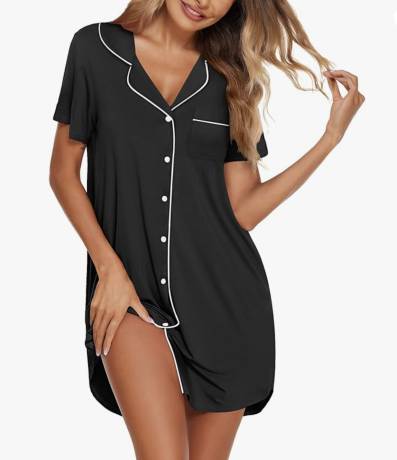 Ekouaer Womens Nightgown Button Down Night Gowns Short Sleeve Sleepshirt V Neck Nightshirt Soft Slee