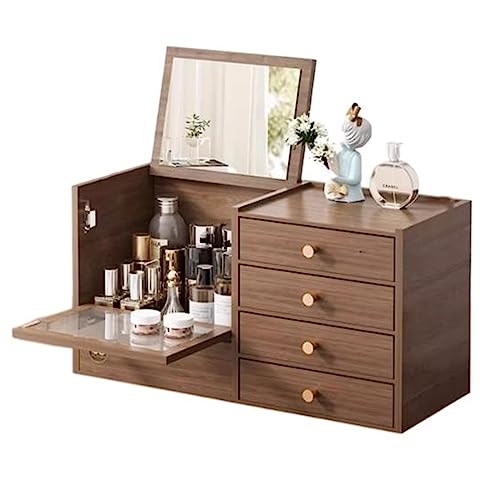 Rangement Maquillage Organisateur de maquillage en bois avec 4 tiroirs et miroir intégré, boîte de r