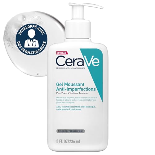 CeraVe Gel Moussant Anti-Imperfections - 236 ML - Nettoyant Visage Purifiant à l’Acide Salicylique -