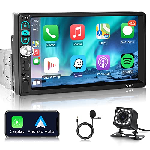 Apple Carplay Autoradio 1 Din avec Bluetooth Mains Libres Auto 7 Pouces Écran Tactile avec IOS/Andro