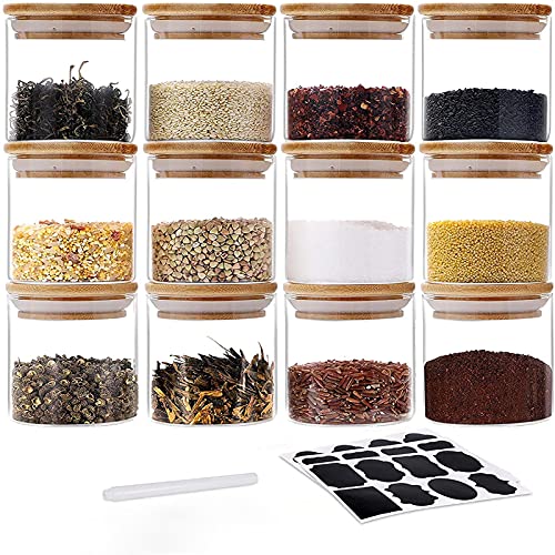 GoMaihe 150ML Petit Bocaux Conservation Verre, Hermétique Bocal en Verre avec Couvercle en Bambou et