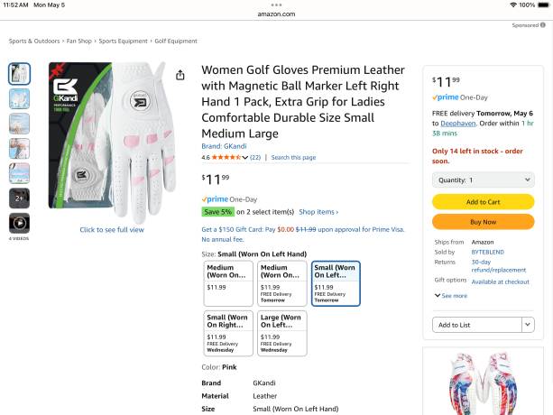 Golf Glove - Ladies left hand size small