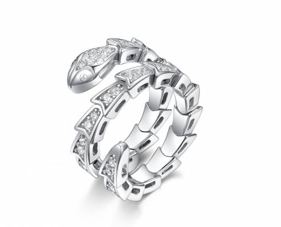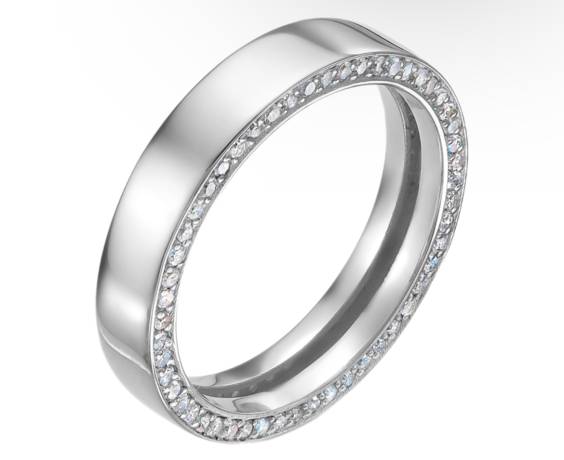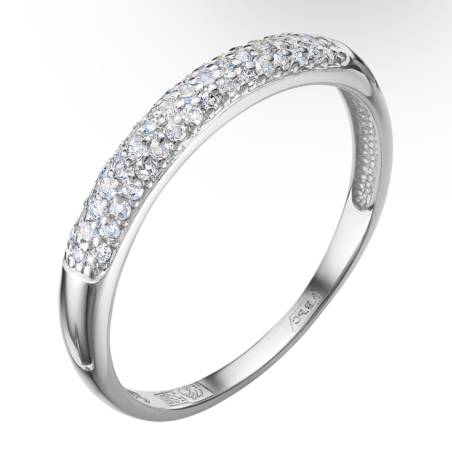 Золотое кольцо широкая Дорожка с бриллиантами в белом золоте